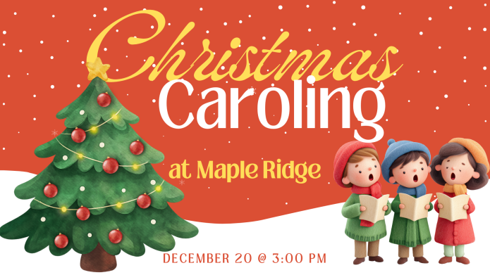 Come caroling and spread some Christmas cheer with us at Maple Ridge December 20 at 3:00 pm
